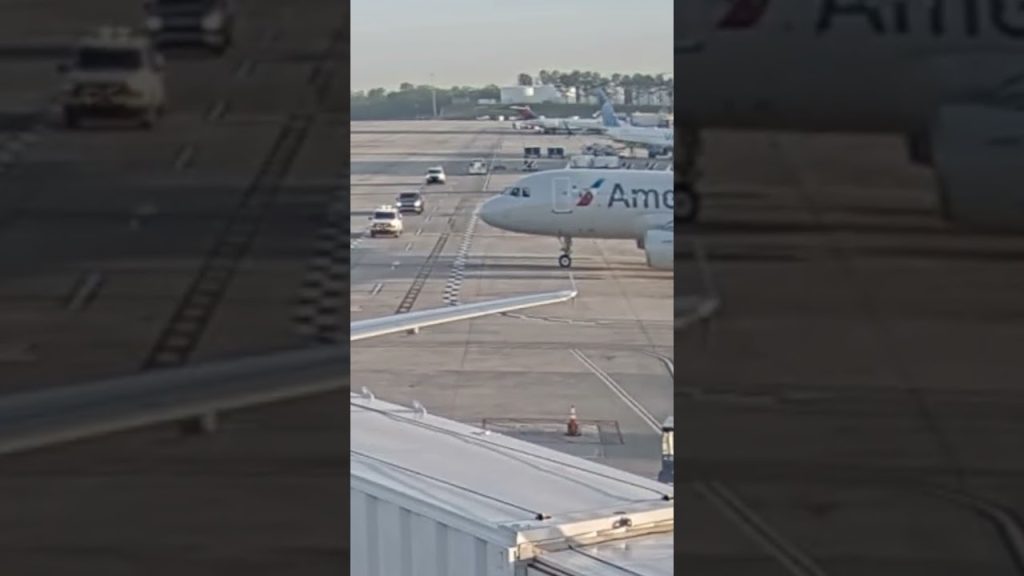American Airlines pilot slams on breaks, nearly crashes into truck on tarmac #shorts