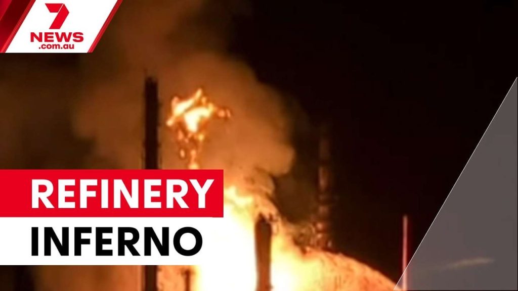 One of Australia’s only oil refineries has erupted into an inferno, taking petrol production offline.